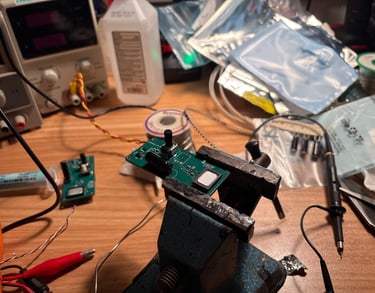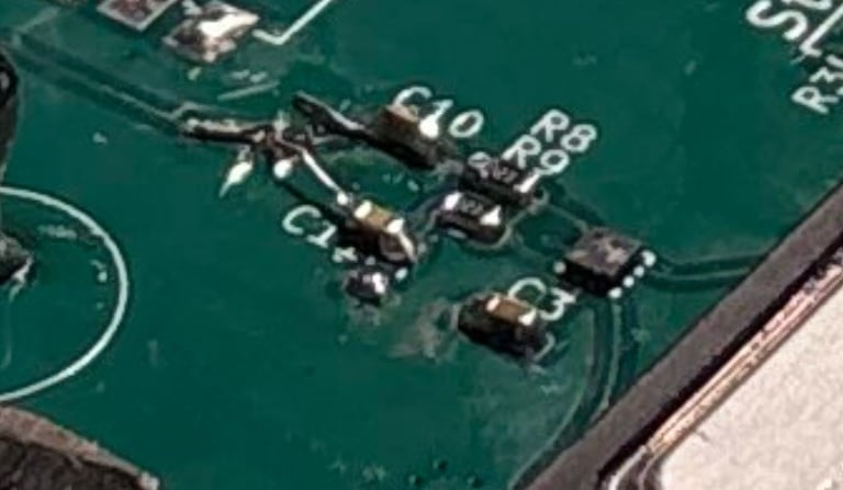 Errors made in circuit design and PCB layout made testing the board so much hard than it needed to be. With some time I was able to get both the preamplifier, amplifier, and power sections working. I wish I had more time and funding to construct a useable prototype, regardless the experience of working with new generation components, bga packages too small for hand soldering, and analog circuits I would not normally work with was invaluable. The video shows initial testing of the preamplifier and amplifier network. The photo shows the bodges necessary to make the differential amplifier work.