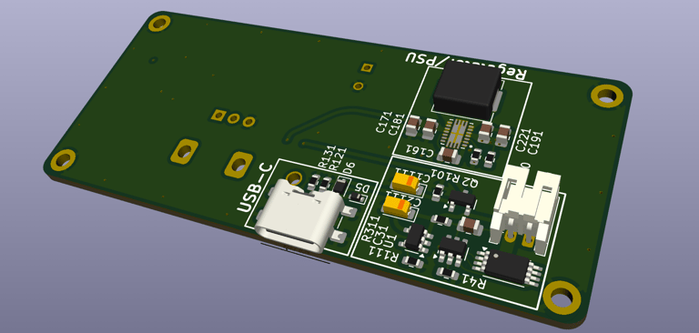 I used Kicad to design the PCB. To help the process get done quickly I designed each block of the circuit as blocks on the pcb, and integrated them after the fact. Kicad makes it easy to quickly layout pcbs and get them manufactured, luckily I was abled to get the boards ordered before the August tariffs took effect.