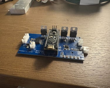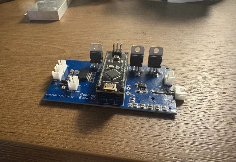 I decided to build this buck converter to learn about their theory of operation and to gain some better experience working with power electronics. I decided to use an arduino nano to build a simple Bang-Bang type controller. I have the Arduino direct control over a GDIC (Gate Drive IC) and feedback via a resistor divider.