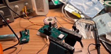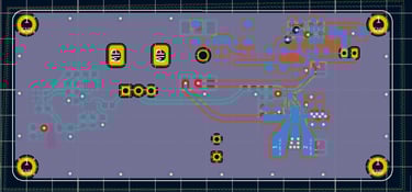 This PCB shows my inexperience at the time. There are elements of it that I do like, although layout generally could be improved and component selection as well. In fact, component selection may of been one of the biggest challenges of this project for me. I picked tiny advanced chips for what should have been a simple project, making troubleshooting and testing a marathon. The boards were ordered from JLC and populated by hand using a hand held iron and hot air gun. This was my first project using reflow and I actually enjoyed the process more than I though I would. However, It will be a while until I pick a BGA component for the first revision of a board.