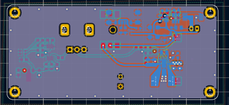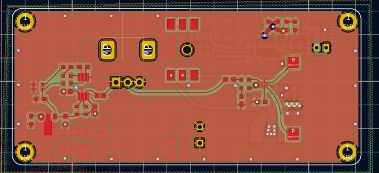 This pcb shows my inexperience at the time. There are elements of it that I do like, although layout generally could be improved and component selection as well. In fact, component selection may of been one of the biggest challenges of this project for me. I picked tiny advanced chips for what should have been a simple project, making troubleshooting and testing a marathon. The boards were ordered from JLC and populated by hand using a hand held iron and hot air gun. This was my first project using reflow and I actually enjoyed the process more than I though I would. However, It will be a while until I pick a BGA component for the first revision of a board.