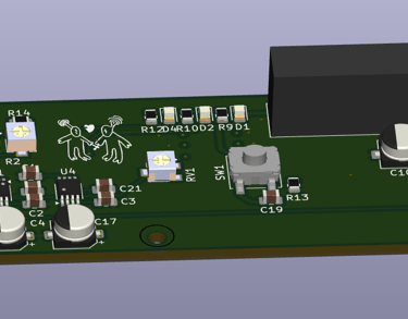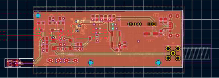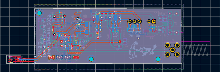 Using Kicad I created a quick 4 layer board. I dont have too much to say about it, I choose four layers so I could keep the layout clean and small, I tried to follow best layout practices and took full advantage of the suite of tools Kicad has, although this project did show me some of the programs limitations. The boards will be ordered on JLCPCB and populated by hand.